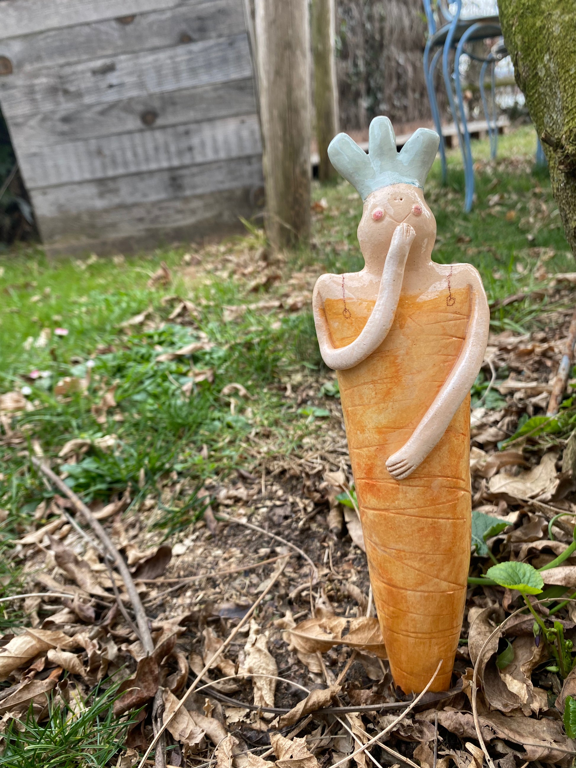Carota alta circa 27 cm da infilare in vaso o direttamente nel terreno. Decorativa per la casa o il giardino.