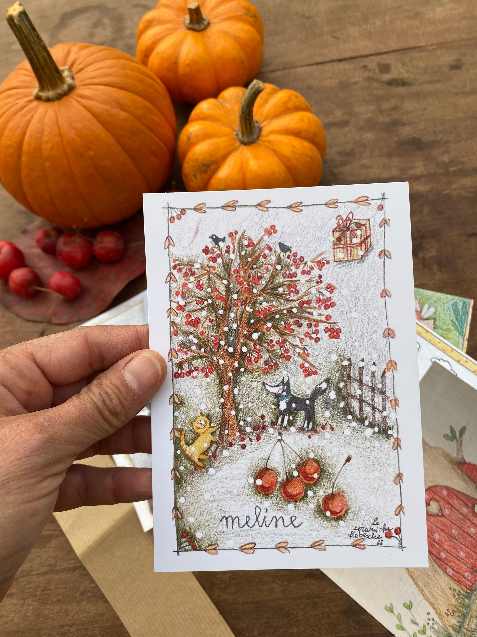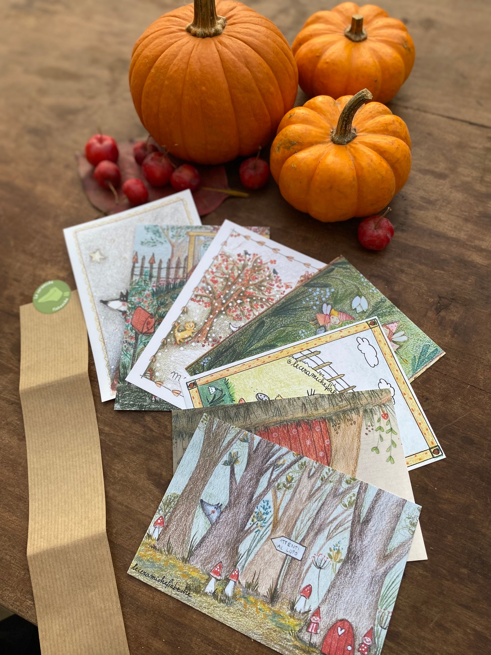 Non perdetevi la collezione completa di 7 cartoline illustrate da me negli anni che possono essere utilizzate come piccoli quadretti o come biglietti di auguri.