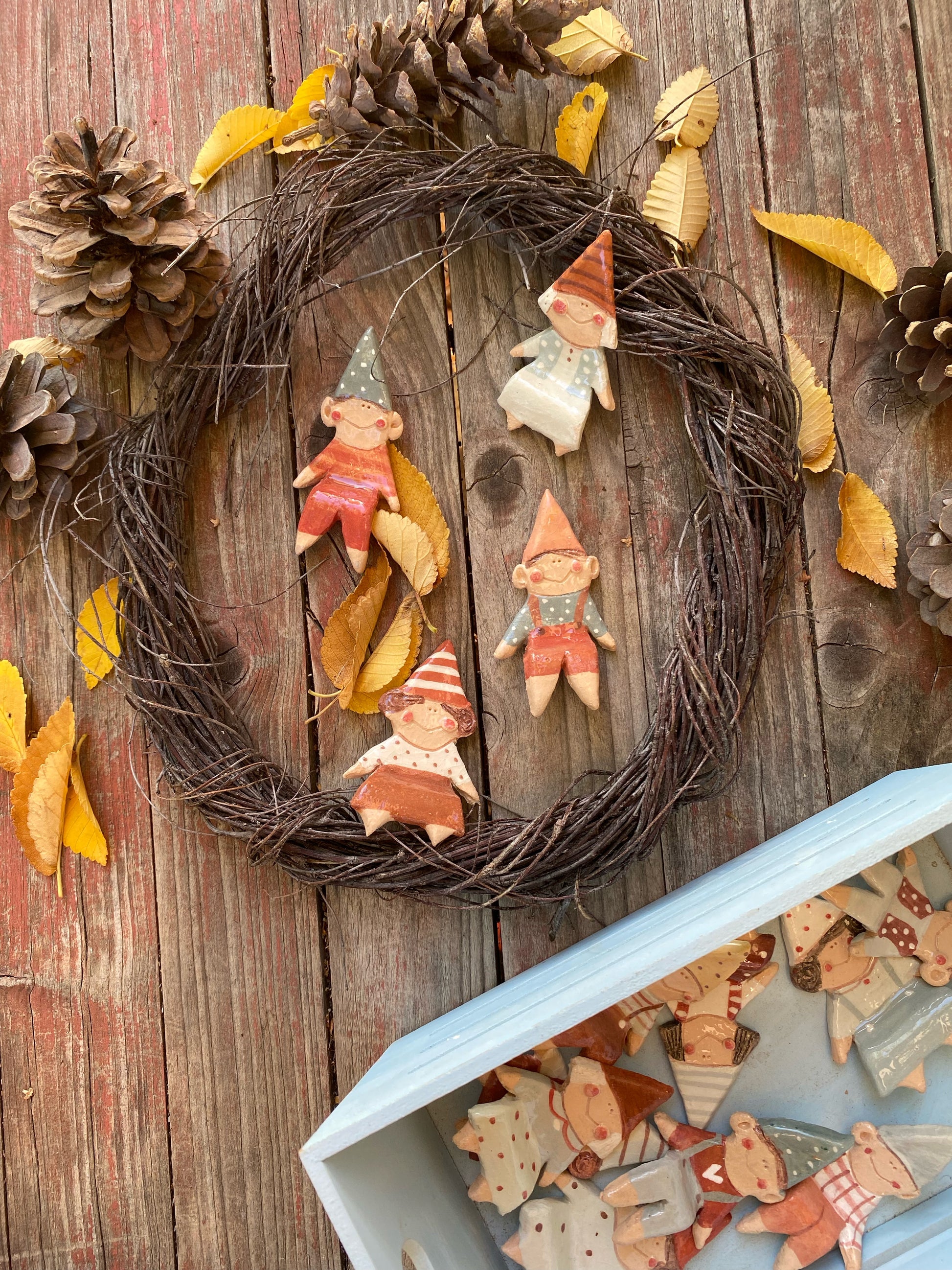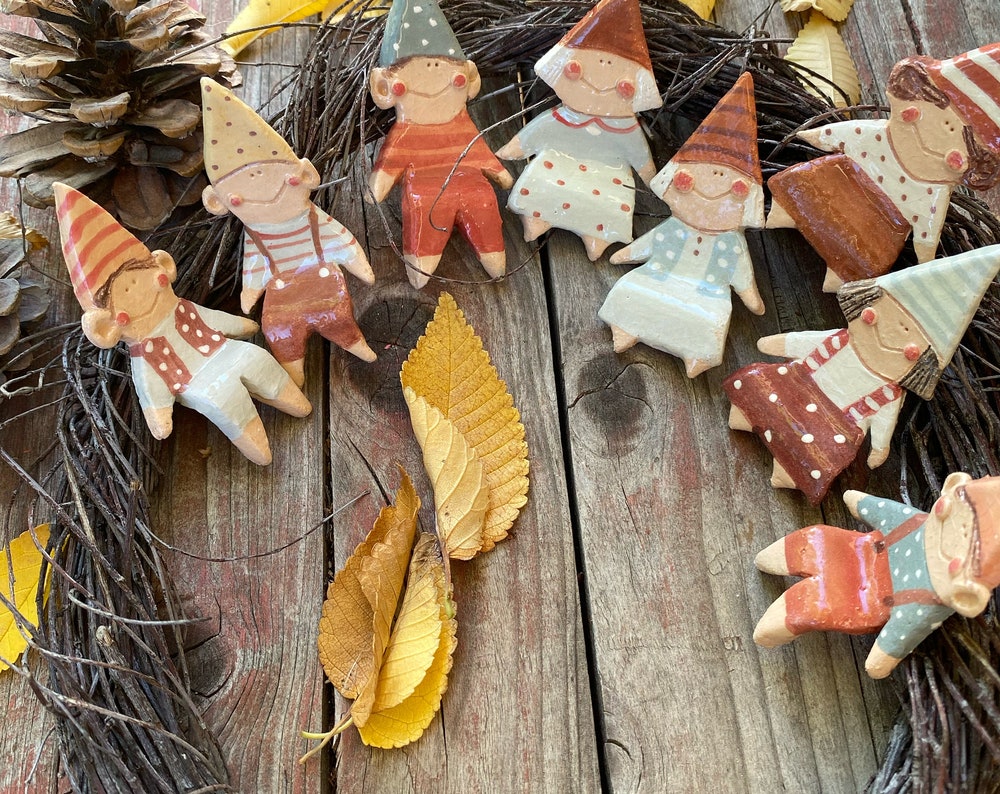 piccoli folletti seduti da mettere su qualsiasi ripiano come ad esempio: mensole, ghirlande o rami di alberi.