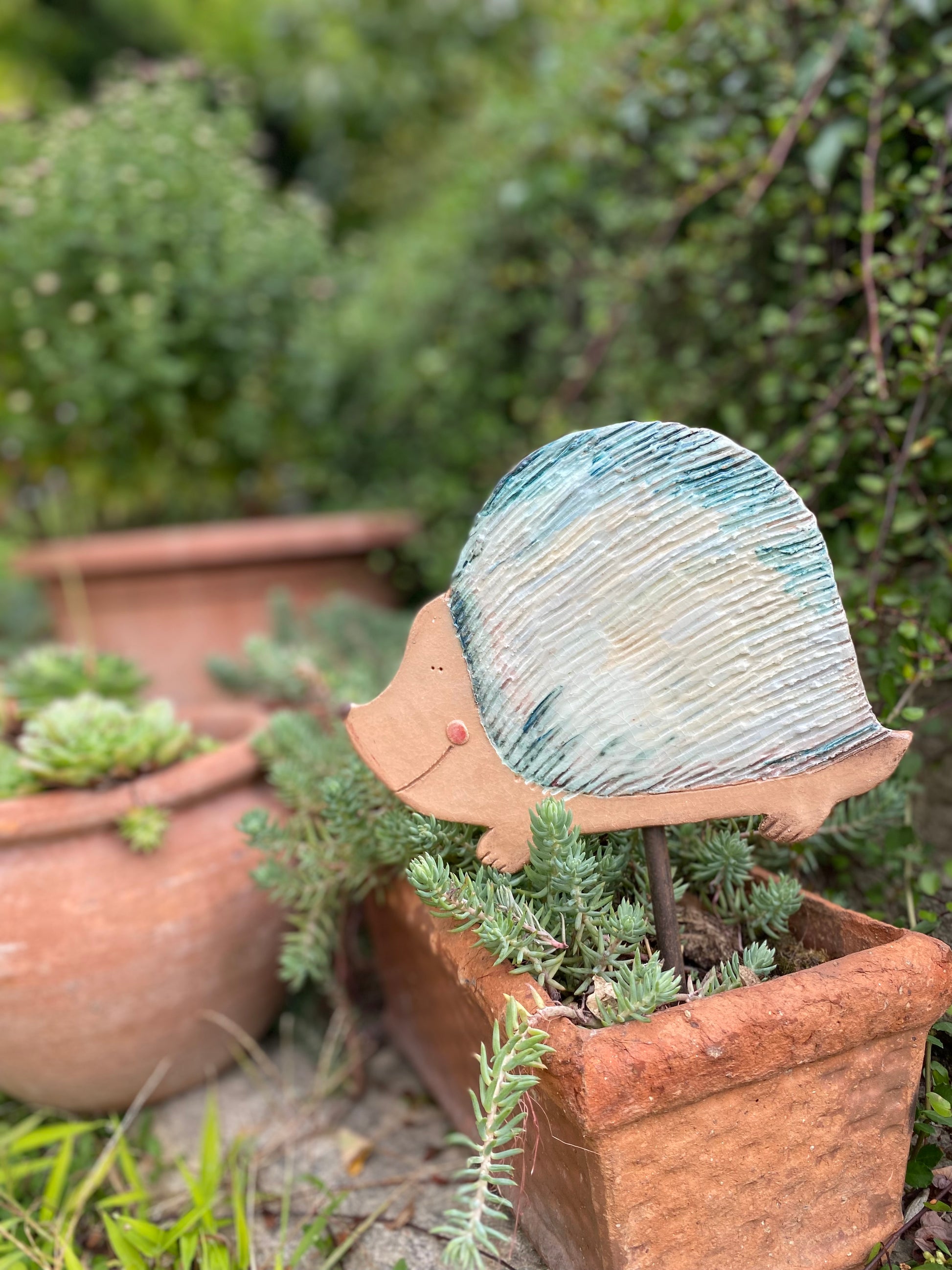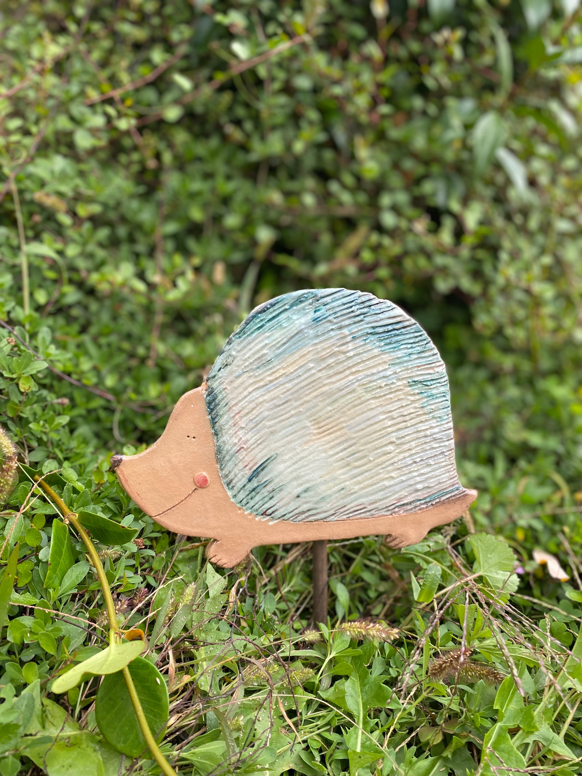 Riccio decorativo per il giardino, si infila nel terreno con un tondino in ferro incluso.