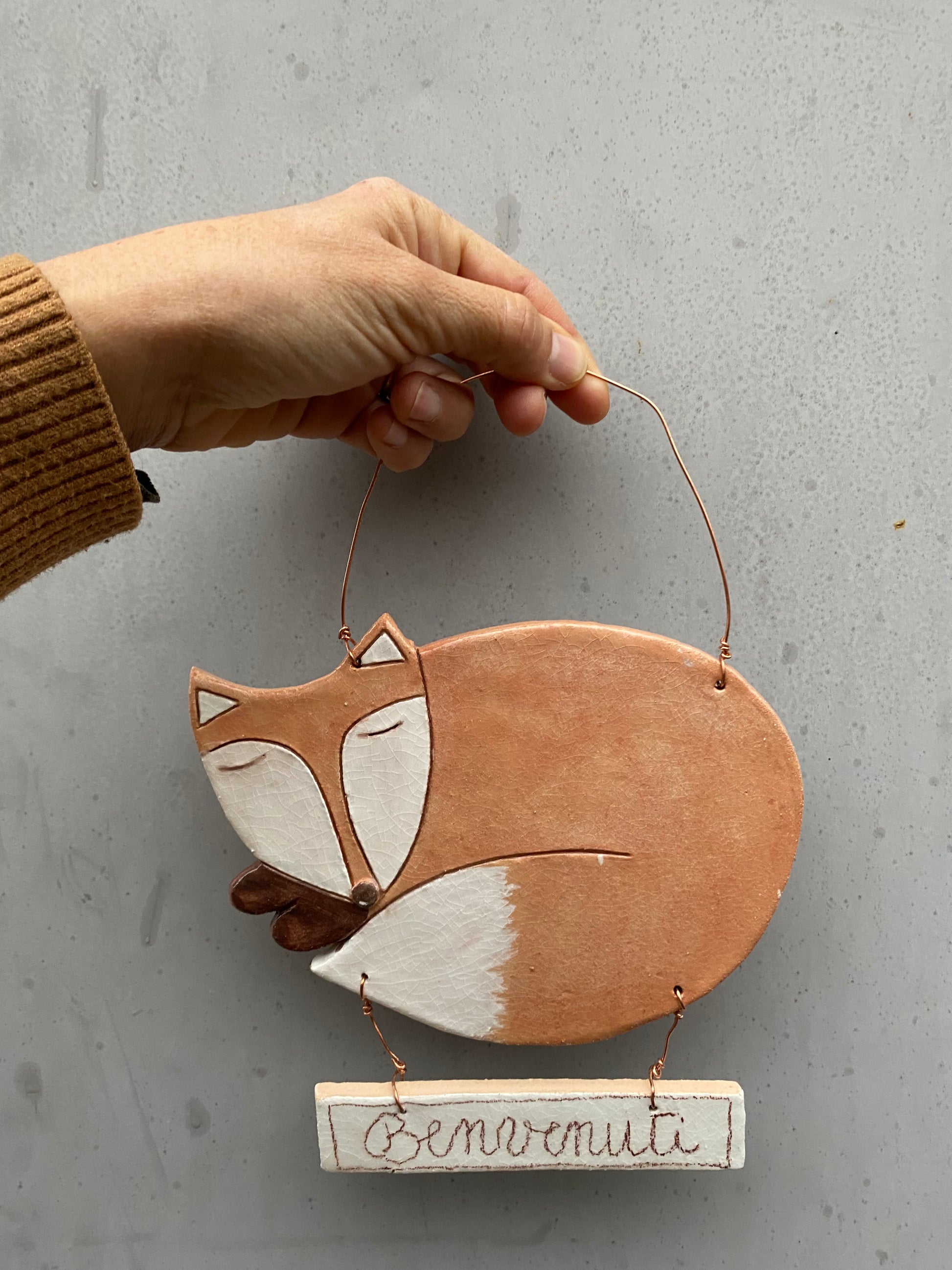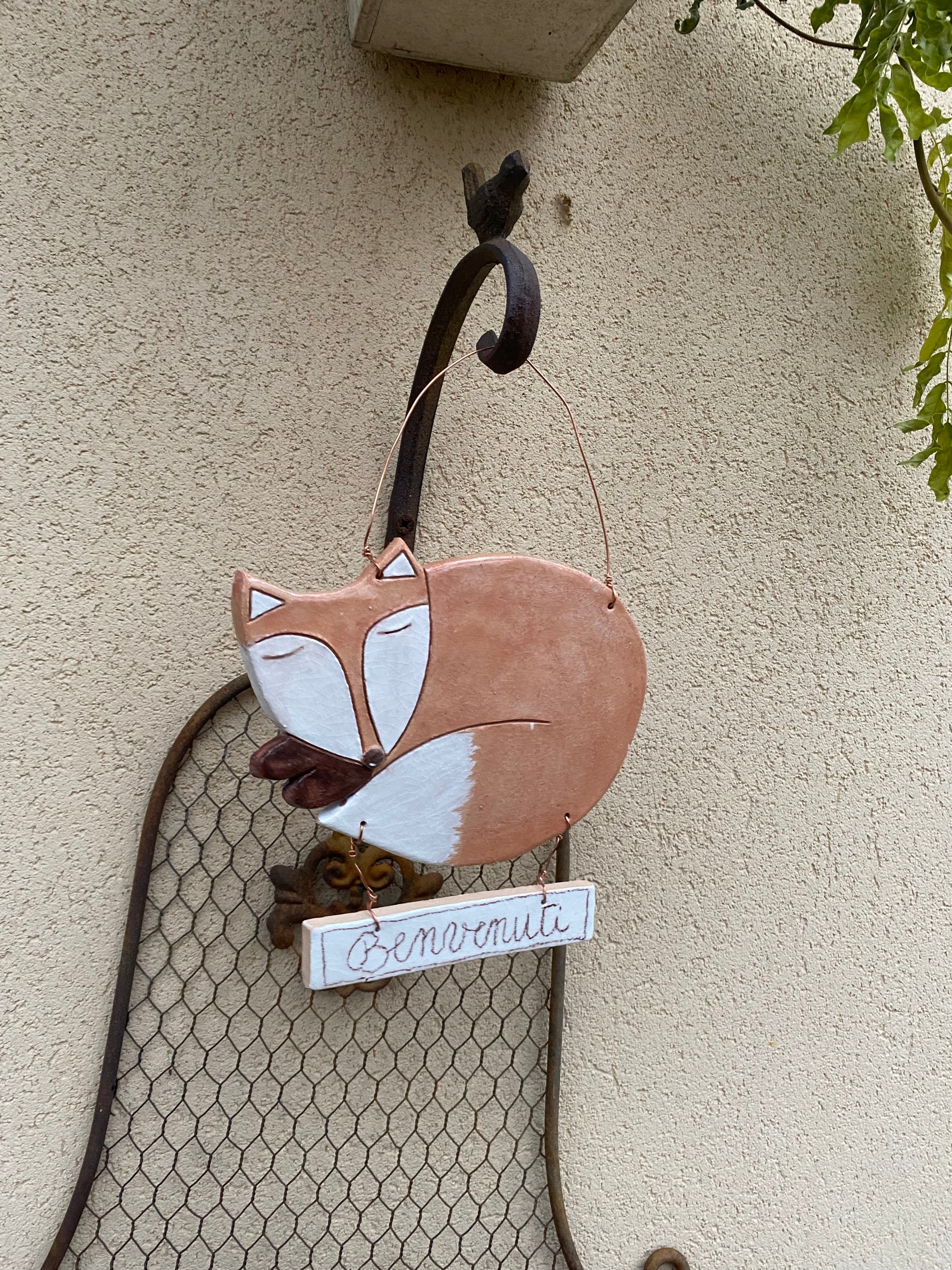 Volpe da appendere con la scritta benvenuti